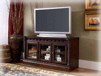 Dark Brown Medium TV Stand by Ashley Furniture Features.
